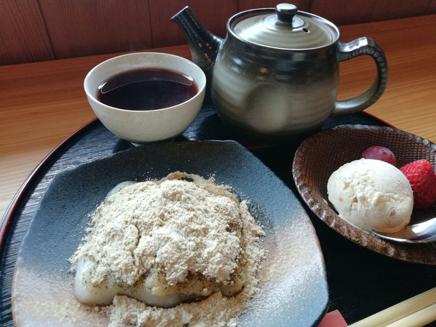 たっぷりの黒薬豆茶もどうぞ